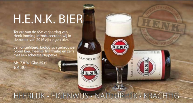 Tapbieren Hertog Jan Pilsener € 2,90 Alc. 5%/25 cl Goudblond, fris Hertog Jan Pilsener € 5,25 Alc. 5%/50 cl Hertog Jan Weizener € 3,80 Alc. 5,7%/30 cl Hertog Jan Weizener € 5,80 Alc. 5,7%/50 cl Diepgouden kleur, robuuste frisse smaak Hertog Jan Lentebock € 4,45 (seizoen) Alc. 7,2%/25 cl Goudgeel, fruitig, stevige afdronk Hertog Jan Herfstbock € 4,45 (seizoen) Alc. 6,5%/25 cl Uitgesproken koppig, vol, romig Hertog Jan Grand Prestige € 4,55 Alc. 10%/25 cl Rijpe, volle smaak. Diep donkere kleur Hoegaarden Witbier € 4,05 Alc. 5%/25 cl Troebele kleur, zacht licht en matig zoet en zuur H.E.N.K. bier € 4,30 Alc. 7,8%/25 cl Ongefilterd, biologisch gebrouwen blondbier met een scheutje Nipperke Leffe Dubbel € 4,30 Alc. 6,5%/33 cl Krachtig, vol abdijbier, donker, iets bitter, zoetig Leffe Blond € 4,30 Alc. 6,6%/33 cl Goudblond, droog, fruitig, kruidig, vol van smaak La Chouffe € 4,05 Alc. 8%/25 cl Blond bier, ongefilterd, fruitig, lichte hopsmaak Cornet € 5,05 Alc. 8,5%/33cl Met eik gelagerd, zachte vanille toets Kwaremont € 5,05 Alc. 6,6&/33 cl Zachte, volle en kruidige smaak Liefmans Fruitesse (seizoen) € 3,80 Alc. 3,8%/25 cl Zacht mousserend Belgisch rood fruitbier Pils Bieren Hertog Jan Pilsener (tap) € 2,90 Alc. 5%/25 cl Goudblond, fris Jupiler € 2,55 Alc. 5,2%/25 cl Zachtbitter Corona € 4,55 Alc. 4,6%/35,5 cl Mexicaans Tarwe Bieren (Wit bieren) Hertog Jan Weizener € 5,80 (tap) Alc. 5,7%/50 cl Diepgouden kleur, robuuste frisse smaak Hoegaarden Witbier € 4,05 Alc. 5%/25 cl Troebele kleur, zacht licht en matig zoet en zuur Franziskaner Hefe-weissbier € 5,15 Alc. 5%/50 cl Romig en fruitig met een vleugje citrus Het Nest Pokerface € 4,80 Alc. 5,5%/33 cl Edele Amerikaanse hopvariëteiten, koriander, fruitig ’T IJ Wit € 5,05 Alc. 6,5%/33 cl Fris bier met een lekker zachte smaak met citroen en koreander Nu verkrijgbaar! Speciaalbierglazen met exclusieve De Kempen/De Zwaan bedrukking € 5,00 per glass Het hoge glas is geschikt voor blonde bieren, het “bolletje” is meer geschikt voor de donkere, wat zwaardere bieren KLAVERTJE-BIER € 13,10 4 proefglaasjes heerlijke speciaalbieren van de tap GRABBEL-BIER € 3,60 Trek een briefje uit de bier-grabbelton. Van het biertje dat op jouw briefje staat ga jij genieten! Amber Bieren Palm € 4,05 Alc. 5%/25 cl... Amberkleurig, fruitig, gistaroma, vlot drinkend Pauwel Kwak € 4,30 Alc. 8,4%/33 cl... Hoog gistend bier, fruitige nasmaak Hertog Jan Karakter € 4,05 Alc. 7,5%/30 cl... Warme kleur van roodkoper, fruitig van smaak Hoegaarden Grand Cru € 4,30 Alc. 8,7%/30 cl... Wazige gouden kleur, fruitig en zoetig aroma Gouden Carolus Classic € 5,15 Alc. 8,5%/30 cl... Robijnrood, mooie balans tussen zoet en bitter Fruit bieren en Gueuzes Liefmans Fruitesse € 3,80 (tap) (seizoen) Alc 3,8%... Zacht mousserend Belgisch rood fruitbier Belle Vue Kriek extra € 3,80 Alc. 4,1%/25 cl... De zoete lichtere variant van de Belle Vue Kriek Kasteel Rouge € 5,05 Alc. 8%/33 cl... Donkerrode kleur, zwaar, met tonen van kersen Bush Pech Mel € 5,35 Alc. 8,5 &/25 cl... Amberkleurig bier met fruitige geuren en smaken. Perzikaroma’s Radler Bieren Hoegaarden Radler Lemon & Lime € 3,30 Alc. 2%/30 cl... Zacht met de frisse smaak van citrus Blonde Bieren La Chouffe € 4,05 (tap) Alc. 8%/25 cl... Blond bier, ongefilterd, fruitig, lichte hopsmaak Hertog Jan Lentebock € 4,45 (tap, seizoen) Alc. 7,2%/25 cl... Goudgeel, fruitig, stevige afdronk Duvel € 4,70 Alc. 8,5%/33 cl... Helder als pils, unieke gebruikte giststammen Cornet € 5,05 (tap) Alc. 8,5%/33cl... Met eik gelagerd, zachte vanille toets Kwaremont Blond € 5,05 (tap) (Seizoen) Alc. 6,6%/33 cl... Zachte, volle en kruidige smaak Brugse Zot Blond € 4,55 Alc. 6%/33 cl... Goudblond, fruitig, kruidig Gentse Strop € 5,55 Alc. 6,9%/33 cl... Geelkleurig bier vol met fruitige smaken Wilderen Goud Blond € 4,55 Alc. 6,2%/33 cl... Fruitig, zacht Kannenkijker Ridder Bliek € 5,30 Alc. 6,5%/33 cl... Blond bier gebrouwen met Hyssop Alcohol vrije Bieren Hertog Jan € 2,55 Alc. 0,0%/30 cl... Alcoholvrije pilsener Franziskaner Alkoholfrei Hefeweizen € 4,55 Alc. 0,5%/50 cl... Duits alcoholvrij witbier Hoegaarden Lemon & Lime Alcoholvrij € 3,30 Alc. 0,0%/25 cl... Zacht met de frisse smaak van citrus Leffe Blond € 3,70 Alc. 0,0%/33 cl... Fris en fruitig en zoetig. Ietwat moutige en bloemige smaak Liefmans Fruitesse € 3,70 (seizoen) Alc. 0,0%/25 cl... Zacht mousserend Belgisch rood fruitbier Donkere Bieren Hertog Jan Herfstbock € 4,45 (tap, seizoen) Alc. 6,5%/25 cl... Uitgesproken koppig, vol, romig Hertog Jan Grand Prestige € 4,55 (tap) Alc. 10%/25 cl... Rijpe, volle smaak, diep donkere kleur Kasteel Donker € 5,15 Alc. 11%/33 cl... Zacht, mild, vol en romig, donkere kleur Corsendonk Pater € 4,95 Alc. 8%/33 cl... Diep donkere kleur, zacht, hergist op fles Degustatie Bieren (genieters-bier voor na het eten!) Gouden Carolus Whisky Infused € 6,50 Alc.11,7%/33 cl... Krachtig en volmondig met subtiele toetsen van vanille. Gerijpt op eikenhouten vaten Straffe Hendrik Quadrupel € 6,70 Alc. 11%/33 cl... Vol van smaak, zoetig, degustatie, fruitig, warm Tripel Bieren Hertog Jan Tripel € 4,20 Alc. 8,5%/30 cl... Zoetig, honing, caramel, kruidnage Karmeliet Tripel € 4,45 Alc. 8,4%/33 cl... Goudgeel, sinaasappelsmaak, mildbitter Gouden Carolus Tripel € 5,15 Alc. 9%/33 cl... Volmondig, kruidig, verfrissende afdronk Delirium Tremens € 5,35 Alc. 8,5%/33 cl... Uniek door de 3 soorten gist, vol en zoetig van smaak Straffe Hendrik Tripel € 5,35 Alc. 9%/33 cl... Frisse toegankelijke tripel, citrus, licht zoetig Het Nest SchuppenBoer € 5,15 Alc. 8,5%/33 cl... Volmondig, fruitig bier met een lichtbittere, kruidig afdronk Slampamper Tripel Ridder Bliek € 5,30 Alc. 8,5%/33 cl... Tripel met bonenkruid, wat het bier een complexe smaak geeft IPA- Bieren (India Pale Ale) Jopen mooie Nel IPA € 5,95 Alc. 6,5%/33 cl... Bitter met fruitige tonen, geur van grapefruit ’T IJ